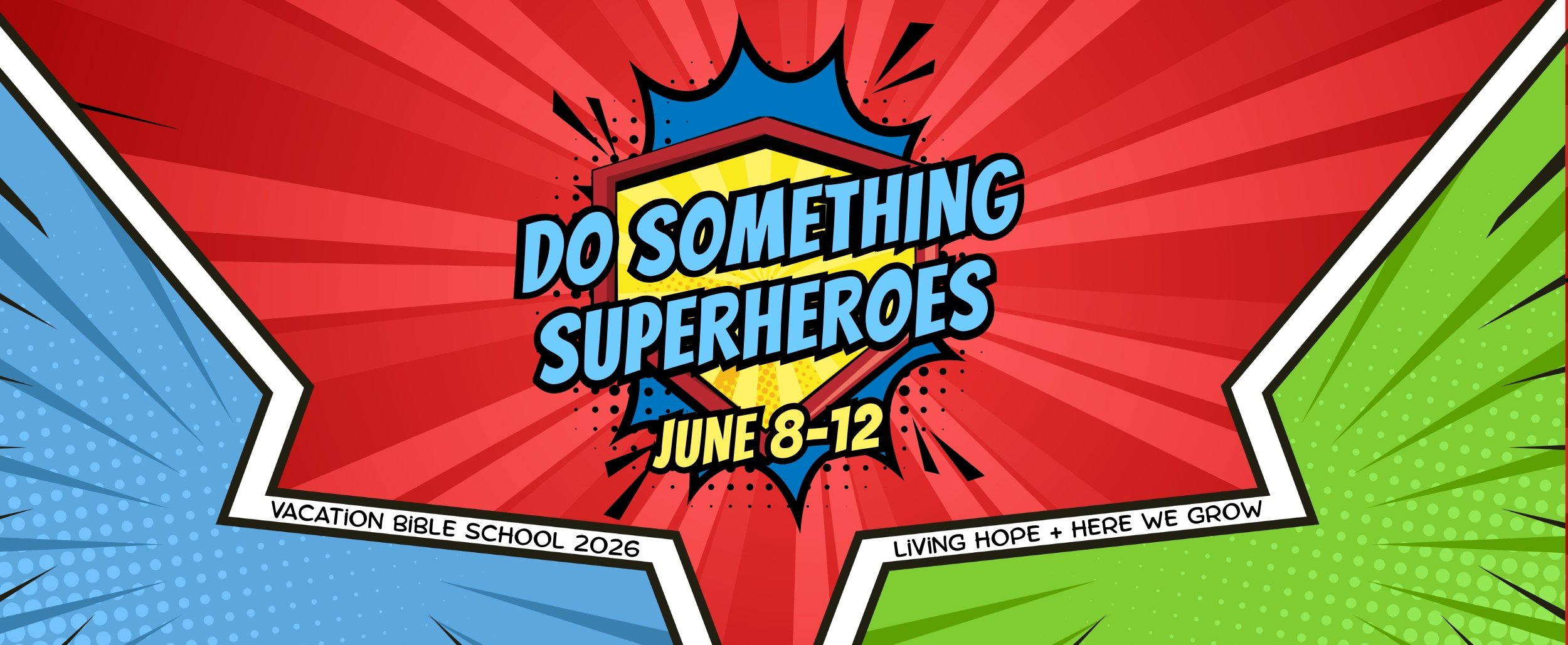 Superheroes assemble! Join us as we enjoy five awesome and action-packed mornings of superhero themed crafts, games, snacks, songs, and more! We'll hear stories of some super cool kids in the Bible and learn how YOU can be a hero by helping others too. No matter your age or abilities, everyone can answer the call to DO SOMETHING to share God's love through your words and actions at our 2026 Vacation Bible School: Do Something Superheroes coming June 8-12 in Saukville.